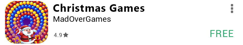 • Great bubble game. Sharp clear, clean, graphics, no colors that don't match at the end of the level, no double colored bubbles, no countdowns, no shortage of bubbles. It gets challenging but is still relaxing. Super cute Santa that cheer you on.